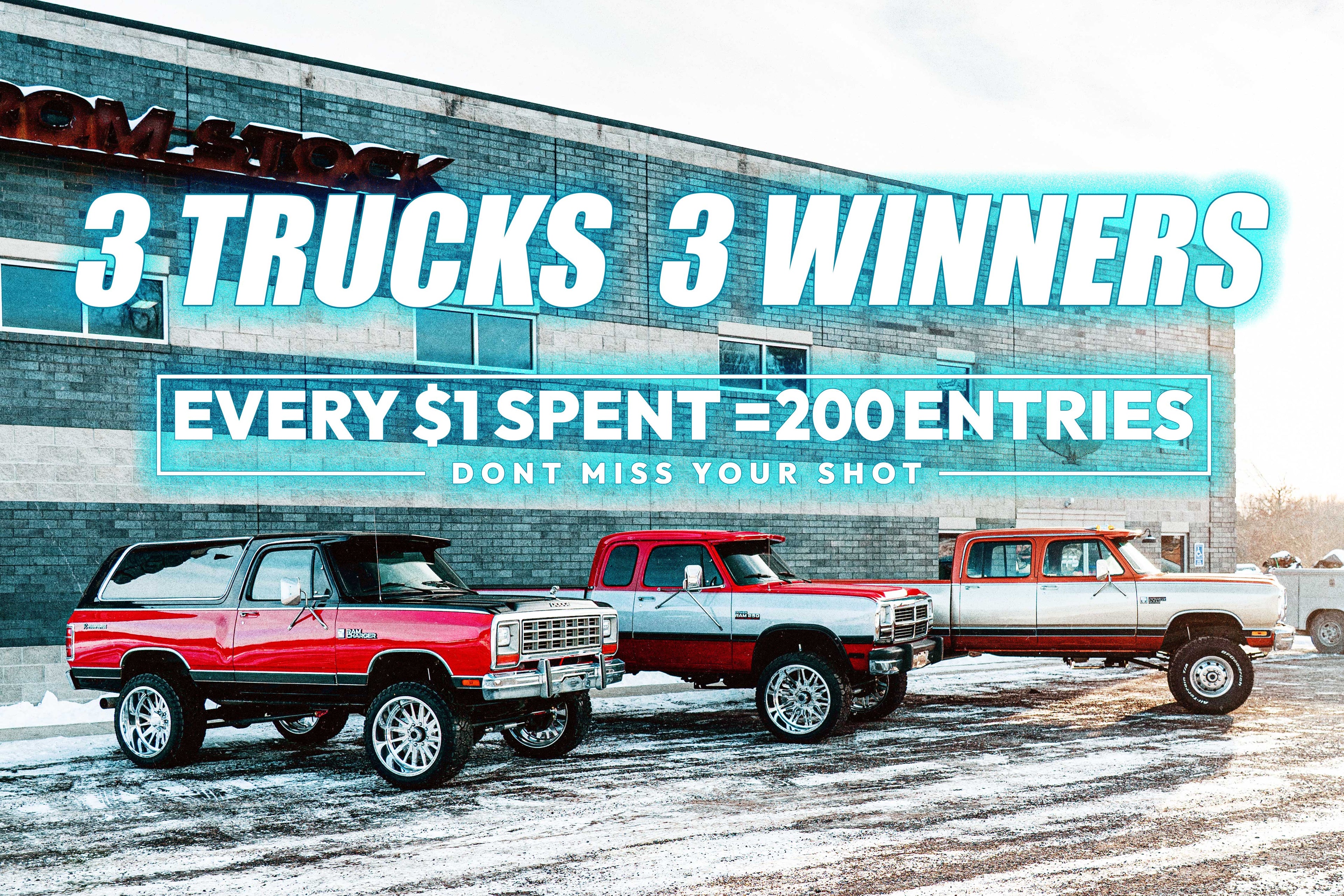 FFSG3 is truly special for us! Our Third giveaway and we wanted to offer something special. Two Trucks and Two winners. 1984 Dodge Ram Charger and a 1992 First Gen Dodge Ram! GET ENTERED TODAY!