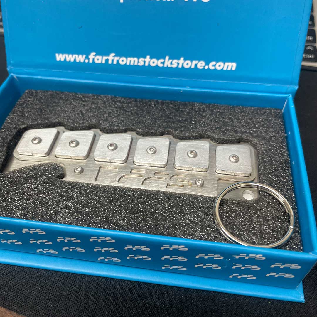 Each keychain is built from stacked metal components and assembled by hand. Hardware is installed individually and checked before packaging. These are produced in small batches and are not mass manufactured.