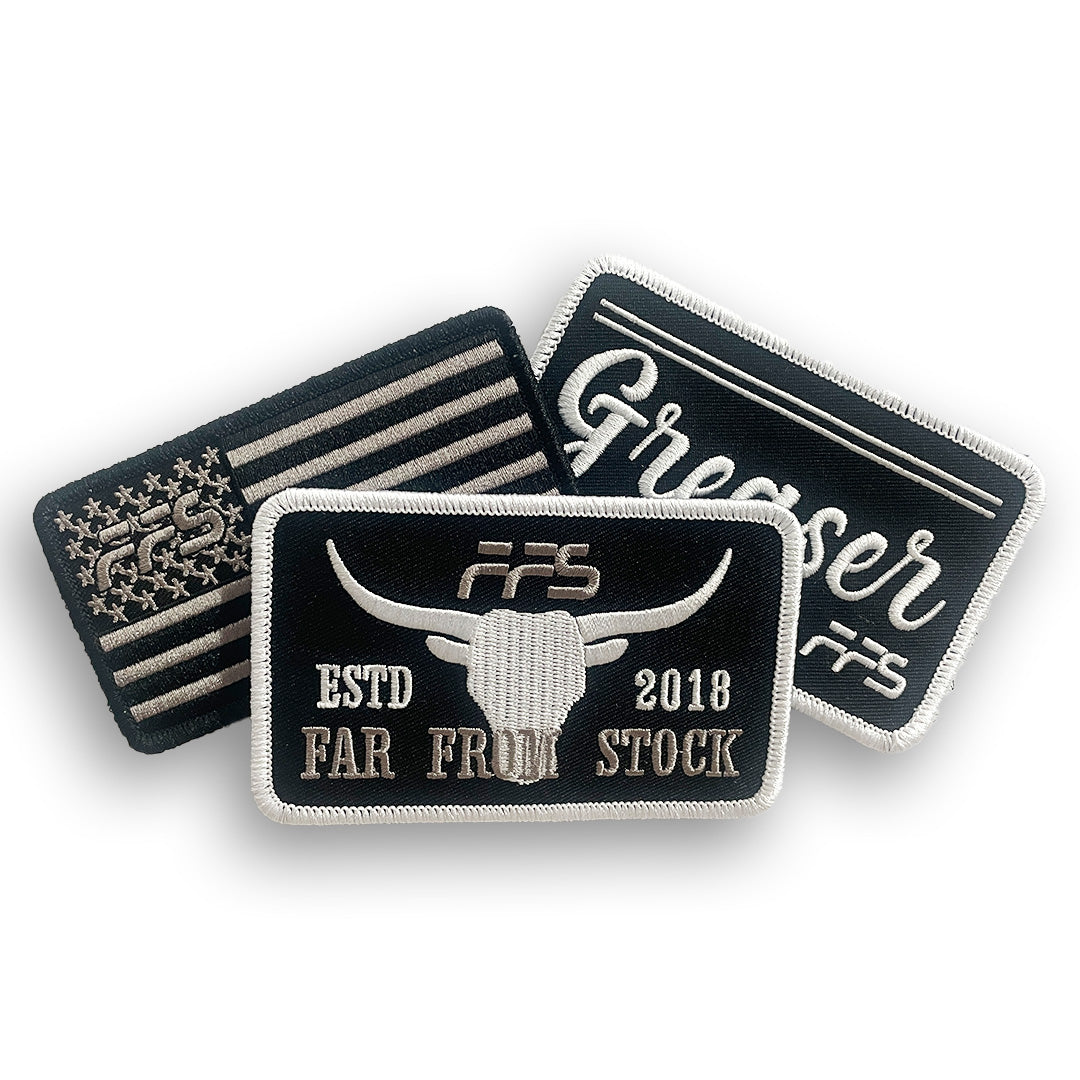 Whether you’re dressing up your visor or stacking ‘em on your patch board, this trio brings heat, grit, and Far From Stock soul to wherever you throw it. Limited batch. Don’t miss it.